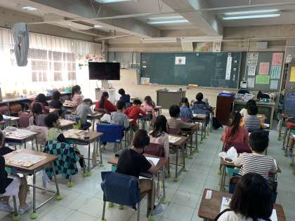 11月21日土曜日に、奉仕活動として、学校内の落ち葉広いをしめした。