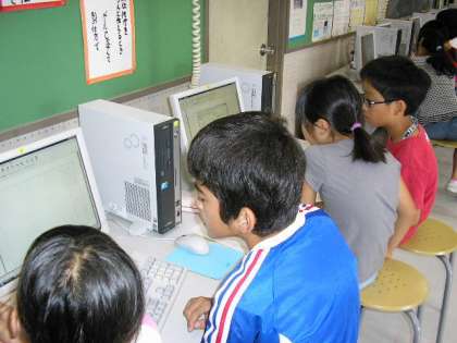 コンピュータを使って詩をローマ字入力し、関係する画像を貼り付けました。(7月1日)