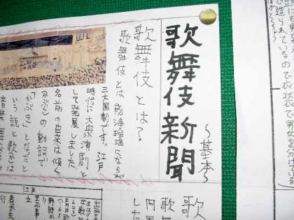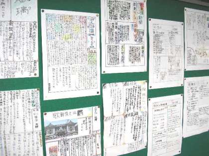 日本語で学習したことをもとにして、自分たちで調べた物が教室前に掲示してあります。(7月1日)