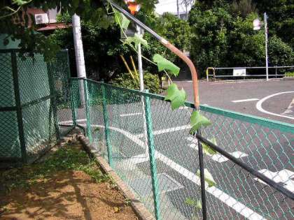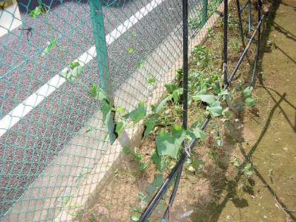 あたたかい日が続いてきたのでヘチマがのびてきました。(7月4日)