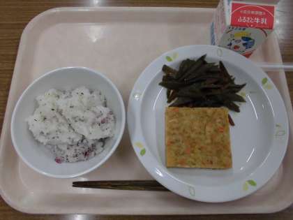 初日の今日は、おせち料理から「松風焼き」と「きんぴらごぼう」を作りました。今年も喜多見小のみなさんが健康に過ごせますようにとの願いを込めました。