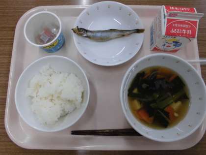 納豆は意外と好きな人が多く、おかわりでも人気です。低学年は初めて食べる人もいましたが、一口食べるとおいしい!とうれしそうでした。
