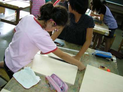 協力して板に印をつけました。(7月6日)