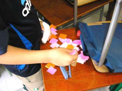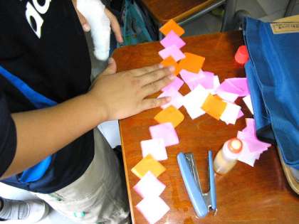 笹を教室に用意したら、早速七夕の飾りを作り始めていました。(7月7日)