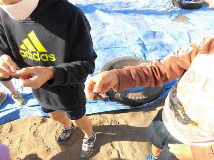 校庭や畑の土に磁石を近付けてみることで、砂鉄の存在に気付きました。