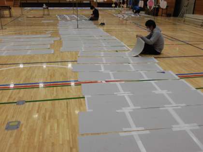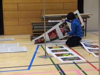 来る展覧会に向け、みなさんの作品を飾ろうと先生たちもが頑張っていますよ。