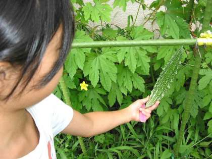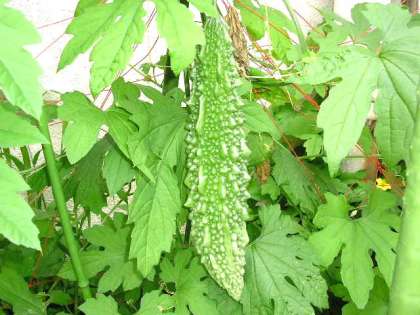 気温があがってきたので、ゴーヤもどんどん実がなり始めています。(7月8日)