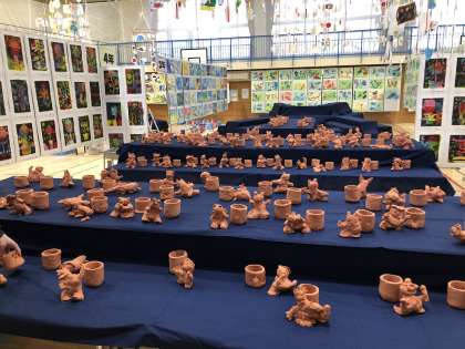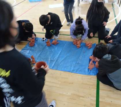 展覧会に向けて準備をしています。4年生の立体作品は焼き物です。大事に運んでいる姿が見られました。