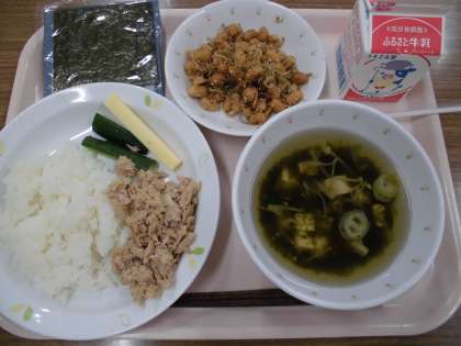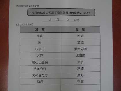 今日は「節分」です。2月2日が節分になるのは、124年ぶりだそうです。給食では、自分で巻いて作る「恵方巻」と豆まきに使う大豆で「大豆とじゃこの甘辛揚げ」を作りました。自分で好きな具をのせる恵方巻、とても楽しそうに作っていました。