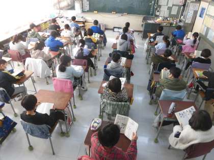 読書タイム(3年生) 公開日 2021/02/10 更新日 2021/02/10 3年生 2月9日 毎週火曜日8時20分〜8時30分は読書タイムです。 この10分間、とても静かに集中して読書をしています。 みなさん、本が好きになれるといいですね。 3年