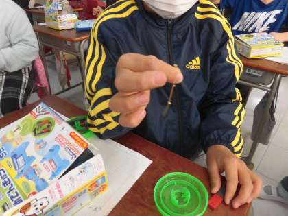 磁石の性質(3年生) 公開日 2021/02/10 更新日 2021/02/10 3年生 2月9日 写真を見ると不思議に思うことがありませんか。 な、なんと、手に持った釘が連結しているではありませんか。 磁石について学習を進めている3年生のみなさん。 この不思議について説明できますね。 磁石の学習も終盤です。次はどのような学習なのか楽しみですね。 3年