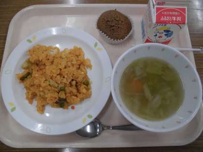 あさって2月14日はバレンタインデーです。なので、給食室から「チョコレートケーキ」のプレゼント!たっぷり愛を込めて焼きました。