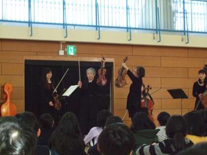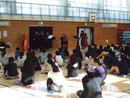 学校の体育館で演奏をしていただきました。