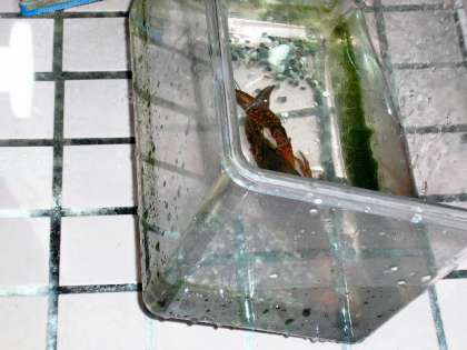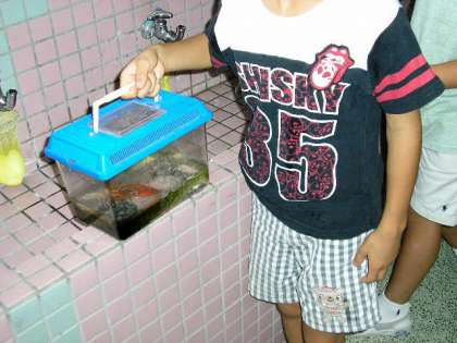 しっかりとザリガニの水をとりかえています。(7月14日)