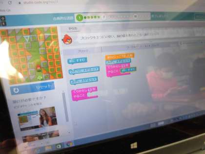 プログラミング(3年生) 公開日 2021/02/24 更新日 2021/02/24 3年生 2月20日 プログラミングの学習を行いました。 ゲームのキャラクターを意図した通りに動かすために、よく考えて指令を出しました。 上手くいかない際には、何に原因があるのか、何が足りないのかといったことを繰り返し考えました。 3年