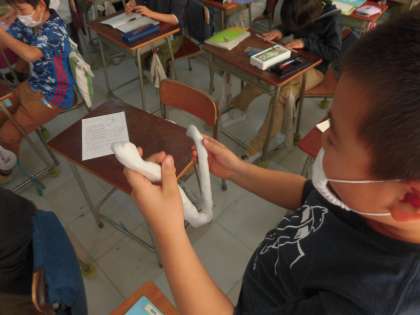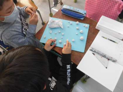 ものの重さを調べよう(3年生) 公開日 2021/02/24 更新日 2021/02/24 3年生 2月22日 理科「ものの重さを調べよう」の学習に入りました。 今日は、粘土の形を変え、最も重いであろう形や最も軽いであろう形を思い思いに作りました。 次回の授業では、みなさんが予想したことを実験で確かめます。 果たして、最も重い形はどのような形なのか。あるいは…。 お楽しみに! 3年