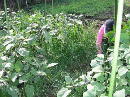 雑草取り(2年生) 公開日 2011/07/24 更新日 2011/07/23 2年生 夏休みに入り、子どもたちが育てているナスの周辺に雑草が生えてきました。子どもたちのナスが大きく育つよう雑草取りをしました。(7月22日)
