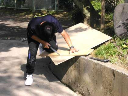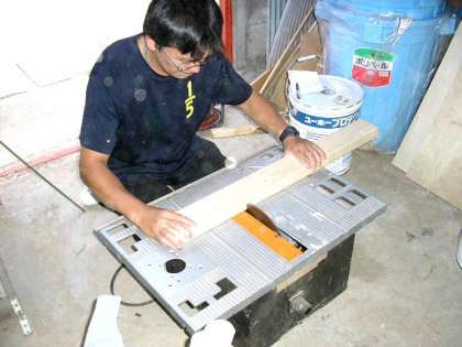 プールの足洗い場に備える板を作っていました。(7月25日)