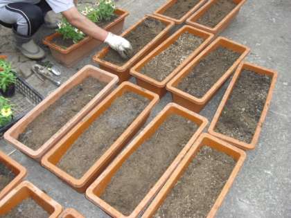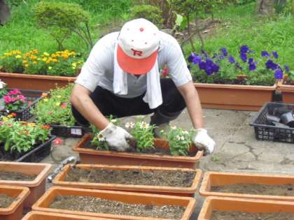 校長先生が、プランターに植物を植えかえました。(7月27日)