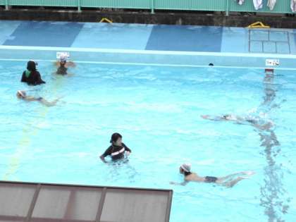 1回目は高学年でした。水慣れをした後、25mで泳ぎました。(7月27日)