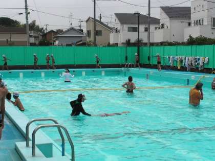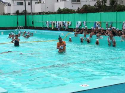 3回目の低学年プールは、学年ごとに水慣れやけのびの練習をしました。(8月2日)