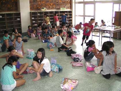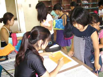 中学年は、2回目でした。たくさんの子どもたちが受付前から並んで待っていました。(8月2日)