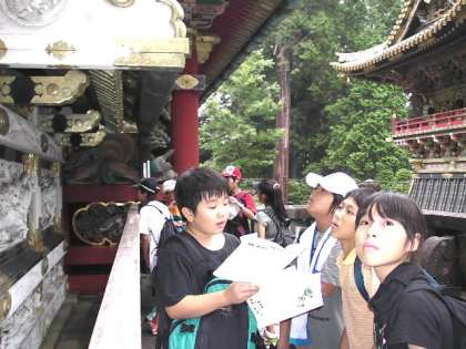 東照宮を班ごとに説明しながら見学しました。(8月3日13時30分)
