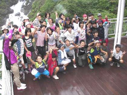 華厳の滝を見学しました。子どもたちは滝のダイナミックさに驚いていました。(8月4日10時)