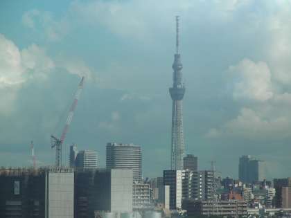 東京スカイツリーが見えました。渋滞しはじめました。(8月5日15時)