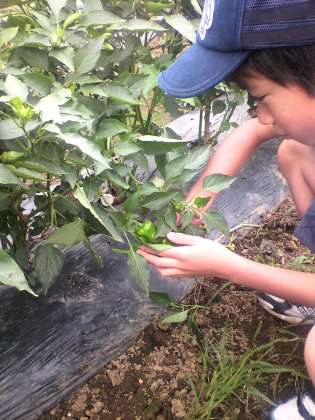 ピーマンの収穫(4年生)