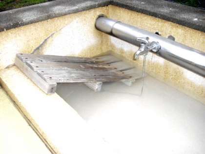 プールの足洗い場 公開日 2011/08/08 更新日 2011/08/07 その他の教育活動 足洗い場の栓を守るために、主事さんがすのこの代わりに丈夫な棚を手作りしました。これで、栓を踏んでしまうことがなくなりました。(8月8日)