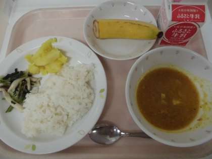 今月のオリパラ給食は「ネパール」の料理です。ダルバートは日本でいう定食のようなもので、ごはんとスープ(カレー)、おかずの組み合わせです。今日は、じゃがいもをターメリックで炒めた「アルサブジ」と、小松菜のソテー「ラヨコサーグ」をごはんといっしょに盛り、ひよこ豆たっぷりのカレー「ダルスープ」をつけていただきました。初めての料理でしたがカレー風味ということもあり、よく食べていました。