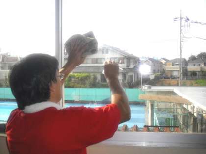 ガラス清掃 公開日 2011/08/20 更新日 2011/08/20 その他の教育活動 主事さんたちは、子どもたちがいない夏休みに校舎内の修理や清掃を行っています。今日は、ガラスについた粘着テープの汚れを落としていました。(8月20日)