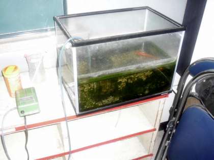 夏休み中、日直の先生が各教室にある生き物の世話をしています。(8月20日)