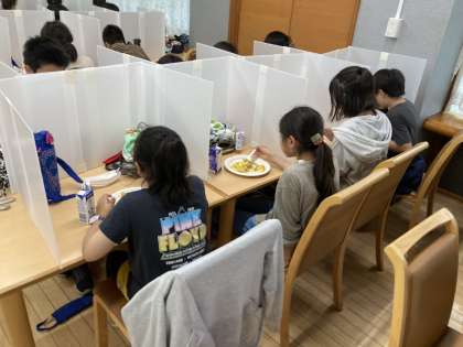 [5年生]川場移動教室 夕食(ふじやまビレジ) 公開日 2021/07/08 更新日 2021/07/08 5年生 飯盒炊さんも終わり、食堂に移動してカレーを食べました。 自分のグループで作ったカレーを食べ、満足そうな笑顔が溢れていました。 これから入浴を済ませ、キャンプファイヤーに移ります。