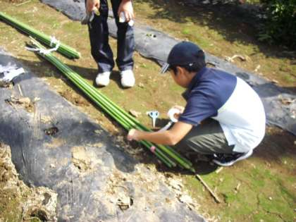 トマトをたくさん収穫できました。今日は、トマトの支柱を片付けました。(8月24日)