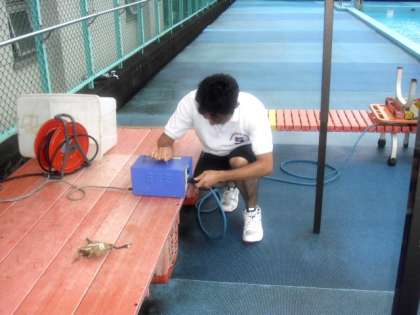 2学期までプールの水質が保たれるように濾過を行っています。(8月27日)