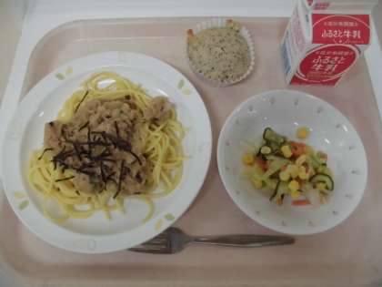 練馬スパゲッティは、練馬区のご当地給食です。今回は練馬区出身の先生からのあついリクエストにより実現しました。おろしだいこんにツナとたまねぎを入れ、しょうゆとお酢でさっぱりと仕上げています。