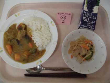 1学期最後の給食です。みずみずしい夏野菜をたっぷり使ってカレーライスを作りました。