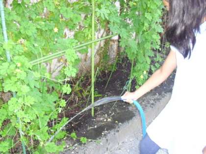 明日から2学期が始まります。今年は、ゴーヤがたくさん収穫できました。みんなが夏休みに水やりをしっかり行っていたので、9月に入ってもまだゴーヤが収穫できそうです。(8月31日)