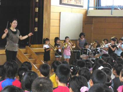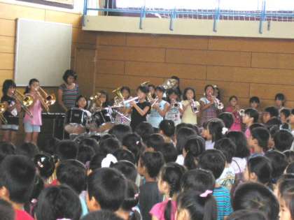金管バンドの演奏で校歌を歌いました。(9月1日)