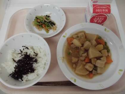 今日は「和」の献立です。喜多見小の子どもたちは、和食のメニューも大好きでよく食べてくれます。今日も「このふりかけおいしいんだよね」と話していました。