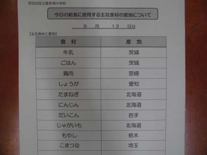 9月13日の給食