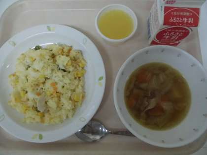 喜多見小では、ゼリーもひとつずつ手作りしています。今日はオレンジジュースを使った甘さ控えめのみかんゼリー、口の中がさっぱりしますね。