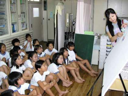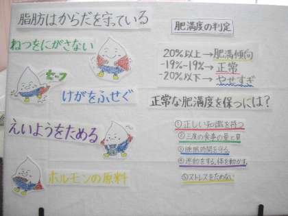 身長と体重を測定する前に、養護教諭から脂肪のはたらきについての話がありました。(9月7日)