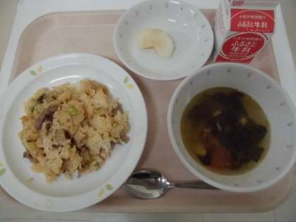 果物は旬を迎えた「なし」です。好きな人が多く、おかわりじゃんけんが盛り上がっていました。みずみずしくシャリシャリとした食感がおいしかったです。