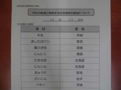 10月11日の給食