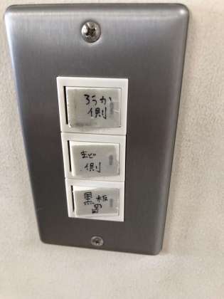 電気の印付けは、どのスイッチでどの列に電気が付くかを明確にした方が、学習でテレビを付けるときにわかりやすいからという理由で作りました。