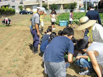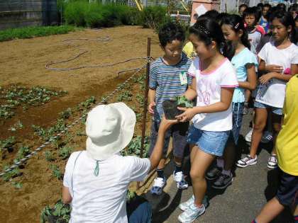 労作支援者の方に教えていただきながら、ブロッコリーの苗を植えました。(9月12日)