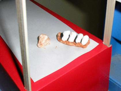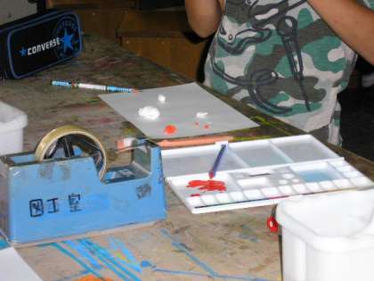 お祭りをイメージして、粘土に色をつけて屋台を作っています。(9月14日)